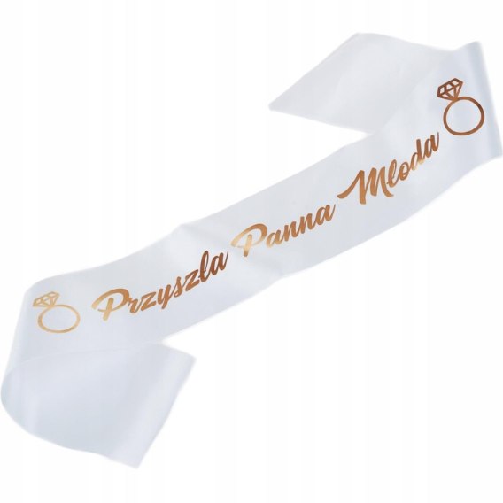 Szarfa biała z nadrukiem rose gold Przyszła Panna Młoda
