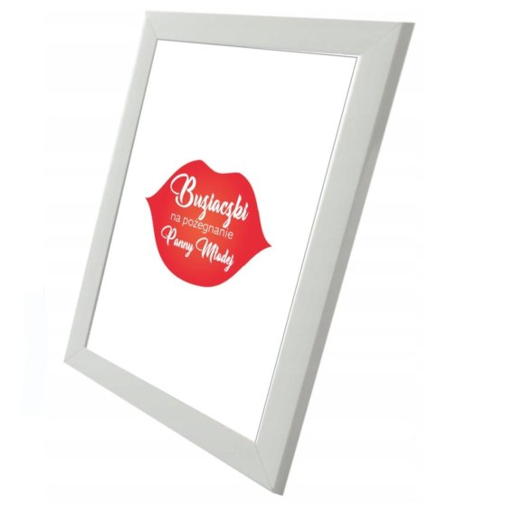 Pamiątkowy biały plakat "Buziaki na pożegnanie Panny Młodej" w ramce.