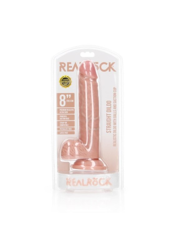 Dildo Real Rock zostało stworzone, aby rozkoszować się nim w pełni. Sztywne i jednocześnie miękkie w dotyku wygląda naturalnie i ma idealny rozmiar. A to w połączeniu z realistycznymi żyłami na trzonie dostarcza Ci dodatkowej stymulacji od środka. Dzięki temu zapragniesz, aby to dildo nigdy nie opuszczało twojego stolika nocnego. To realistyczne dildo jest całkowicie proste dzięki czemu idealnie nadaje się do głębokiej penetracji. Detale, takie jak moszna i kształtna żołądź, sprawiają, że to dildo w użyciu jest niezwykle naturalne. Przyssawka pozwala na używanie bez pomocy rąk (po przyczepieniu do gładkiej powierzchni) i umożliwia także używanie dilda RealRock z uprzężą. Dzięki tym wszystkim możliwościom osiągniesz wybuchowy orgazm, któremu niczego nie będzie brakować. Wymiary opakowanie 14,10 x 8,30 x 30,90 cm Waga opakowanie 550 gram Wymiary produktu 7 x 7 x 23 cm Masa produktu 460 gram Średnica produktu 4 cm Wprowadzana długość 17 cm Wodoodporność Tak Odporność na zachlapania Tak Bez ftalanów Tak Materiały PVC